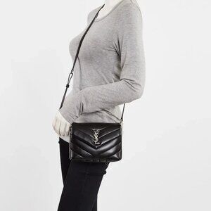 Yves Saint Laurent Black Chevron Quilted Leather Toy LouLou Shoulder Bag