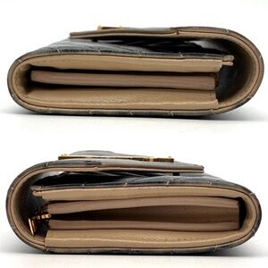 Yves Saint Laurent Black Chevron Wallet with Gold Emblem