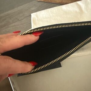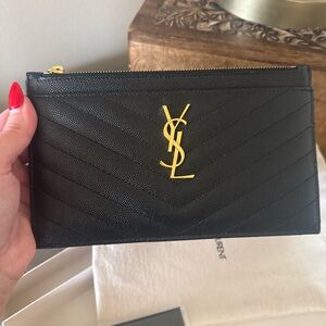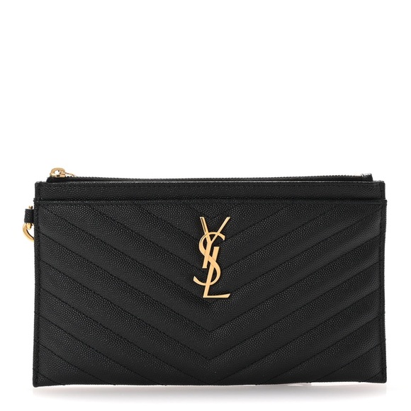 Yves Saint Laurent Black Chevron Wristlet with Gold Emblem