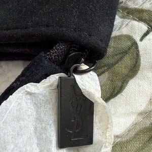 Elegant black clutch with iconic YSL logo. Perfect for evening outings. I am reposting bc it’s not what I expected. It made of a suede/felt like material.