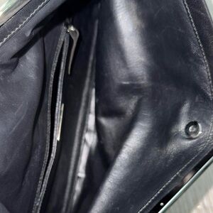 Vintage ysl black nappa leather should folding shoulder sling purse/clutch. Has a magnetic closure. So versatile & cute