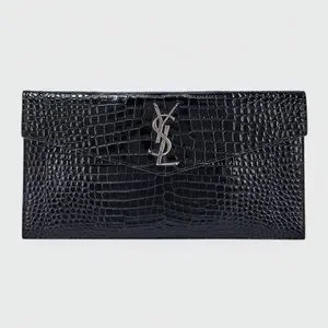 Yves Saint Laurent Black Croc-Embossed Clutch