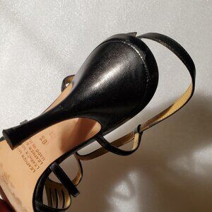 YSL black all leather evening high heel sandals. Open, light, very comfortable and at the same time give formal dressy look. For weddings, formal, business/cocktail evening events. Made in Italy. They are wide enough to feel suitable. Pre-owned. In very good condition. Heels: 3 ½ in.