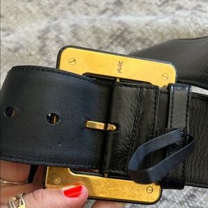 Yves Saint Laurent Black Leather Belt with Gold Accent