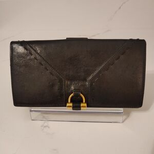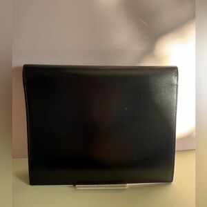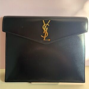 Yves Saint Laurent Black Leather Envelope Clutch Gold Logo