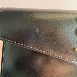 Crafted from smooth black leather with a structured envelope silhouette, this clutch is elegant, versatile, and always in style.