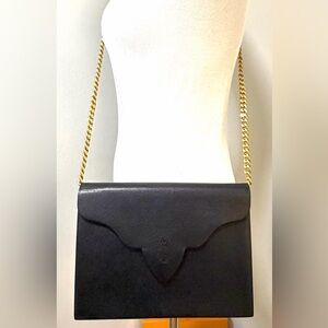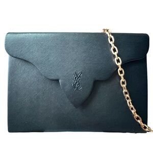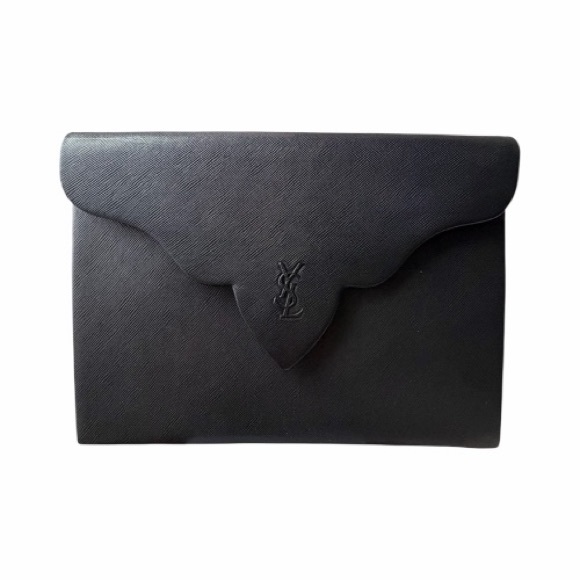 Yves Saint Laurent Black Leather Envelope Clutch - Vintage