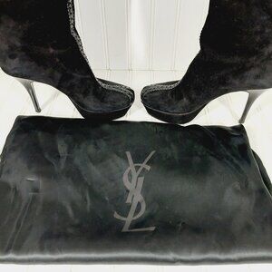 Yves Saint Laurent Black Leather Suede and Patent Slip On High Heel Boots I22