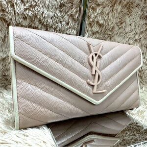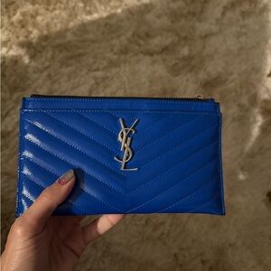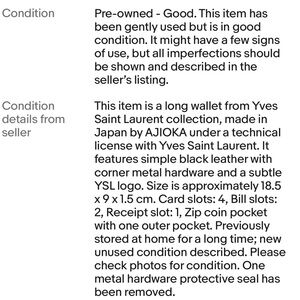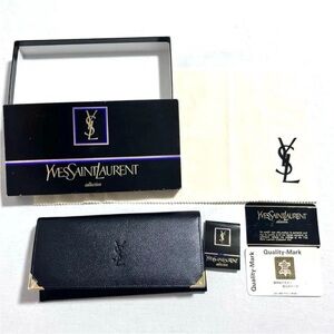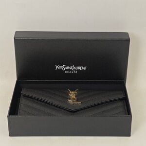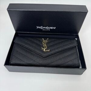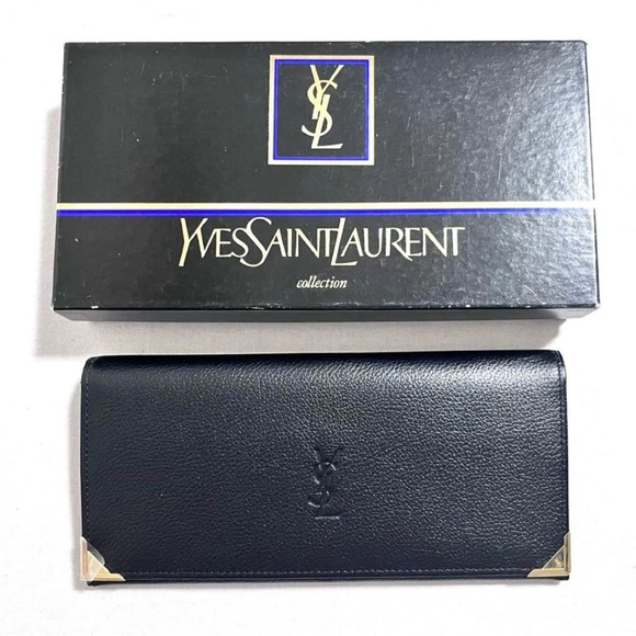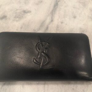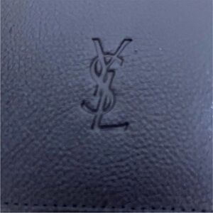 Elegant black leather wallet. Embossed YSL logo. Perfect for everyday use.