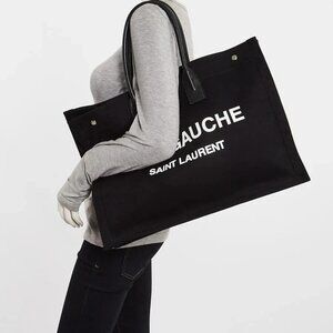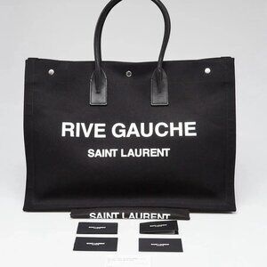 Yves Saint Laurent Black Linen And Leather Rive Gauche Tote Bag