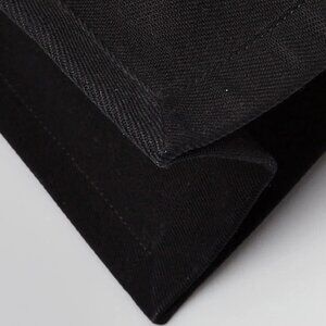 Material: Black colored linen with black leather trim