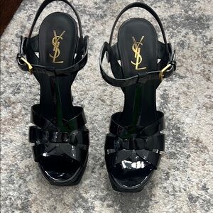 Yves Saint Laurent Black Patent Leather tribute platform Sandals