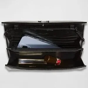Elegant black quilted design. Iconic YSL logo. Perfect for any occasion.