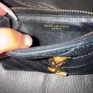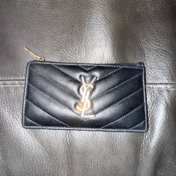 Elegant and stylish, this Yves Saint Laurent black quilted leather wallet is perfect for any occasion. Featuring the iconic Yves Saint Laurent logo, it combines luxury with functionality. this has been used for the last 4 years. has life left and the zipper works. the leather shows wear.