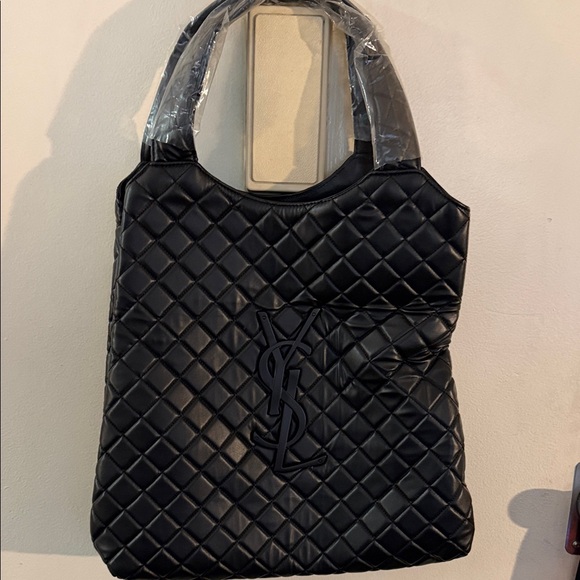 Chic black quilted tote by Yves Saint Laurent. Stylish and versatile for any outfit.