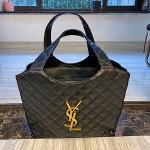 Yves Saint Laurent Black Quilted Tote with Gold Logo