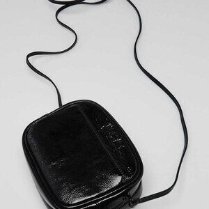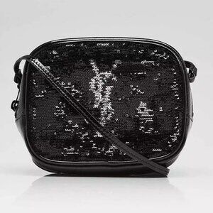 An adorable Yves Saint Laurent Black Sequin and Patent Leather Mini Blogger Bag in this compact size will hold your cell phone, keys and other necessities. The bag is crafted out of durable patent leather and sequins with a crossbody leather strap. Sequined mongram YSL logo gives this bag a fun and edgy look! Who knew something so small could make such a big impact! Retail price is $1250.
