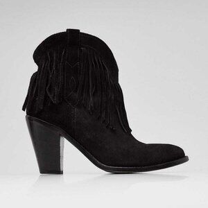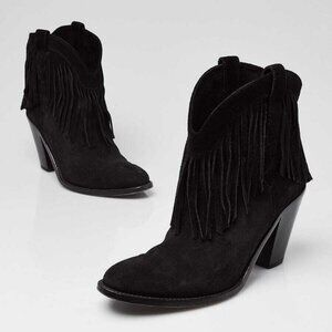 Yves Saint Laurent Black Suede Fringe Cowboy Boots Size 6/36.5