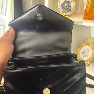 Yves Saint Laurent Black Velvet Crossbody with Gold Logo