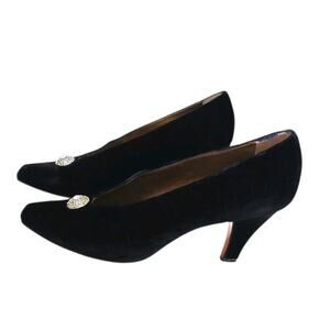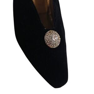 Yves Saint Laurent Black Velvet Jeweled Pointed Toe Heels Size 9.5 Party Vintage