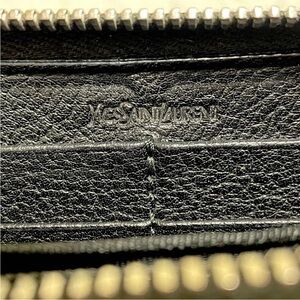 Chic Yves Saint Laurent wallet. Black leather with gold studded logo. Stylish and versatile.