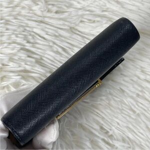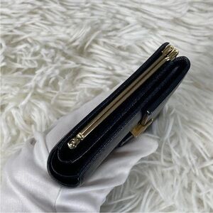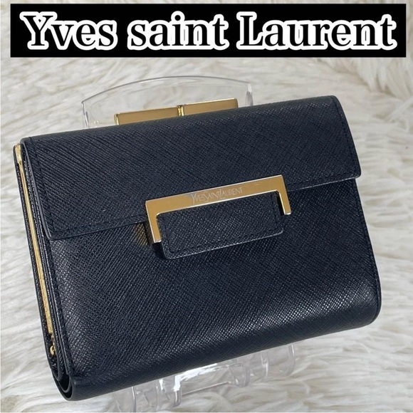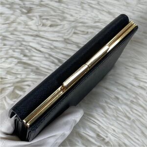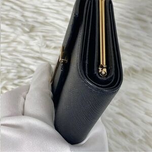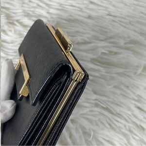 Sophisticated black wallet featuring sleek gold hardware. Perfect for stylish outings.