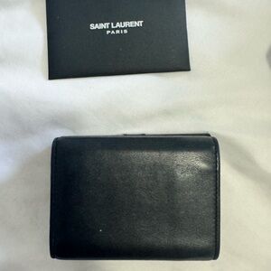 Elegant and timeless, this Yves Saint Laurent black leather wallet is perfect for any occasion. Featuring a sleek design with the iconic Yves Saint Laurent logo, it combines style and functionality. (Has authenticity cards). I just found the wallet now it’s ready for a buyer