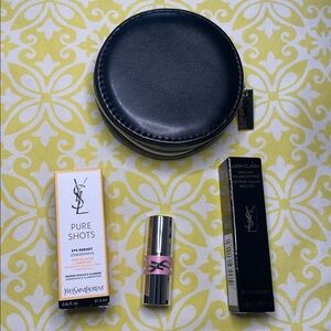 Yves Saint Laurent Black Zip Pouch Charm Essential Set, Lipstick, serum, mascara