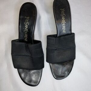 Yves Saint Laurent Block Heeled Slides Black Stretch Women's Size 8