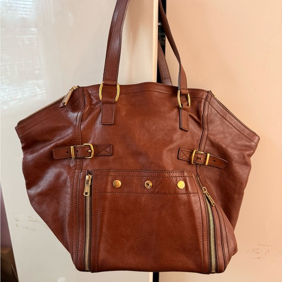 Yves Saint Laurent Brown Leather Tote with Gold Details