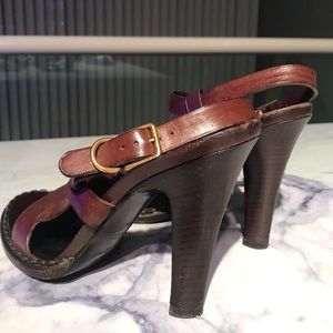 Yves Saint Laurent Brown Leather Wood Strappy Sandals Heels 39 / 9