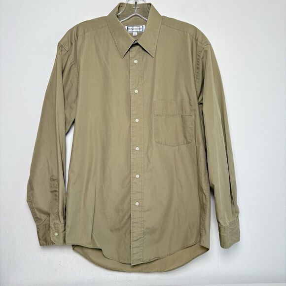 Yves Saint Laurent Button Up Shirt YSL Vintage Men's 15 32-33 Tan Long Sleeve