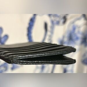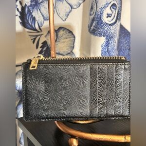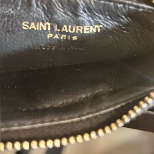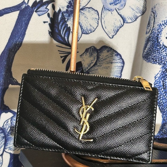 Yves Saint Laurent Card Zip Leather Monogram Black Wallet Coin Case w Zipper