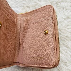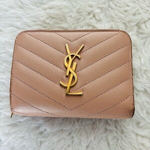 Yves Saint Laurent Cassandra Matellase Blush Grain Leather Compact Wallet