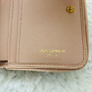 Stylish Yves Saint Laurent wallet in blush leather. Features iconic logo detail. Pre owned condition with signs of use please check pictures for details and condition, authentic.