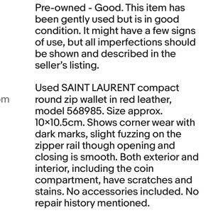 Chic cherry leather card holder. Embossed Yves Saint Laurent logo. Sleek and stylish design.