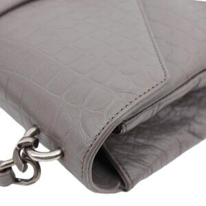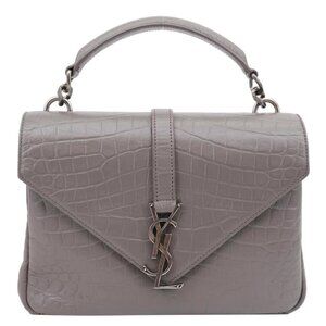 Yves Saint Laurent College Medium Crocodile Embossed Leather Satchel Bag Gray