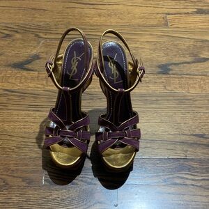 Yves Saint Laurent Cream and Black Strappy Heels