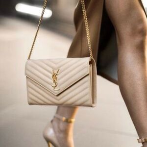 Yves Saint Laurent Crocodile Embossed Clutch and Card Holder in Cream