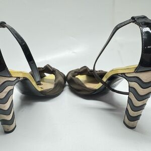 Chic Yves Saint Laurent heels in dark brown. Features elegant knot design. Ideal for stylish occasion vintage