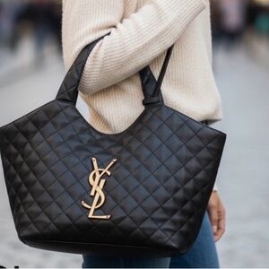 Yves Saint Laurent Dark Brown Tote with Logo Straps