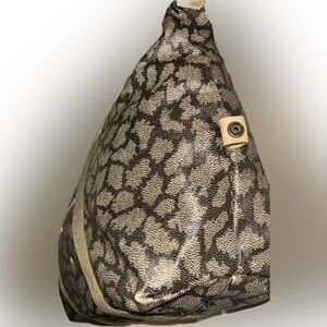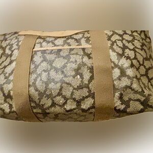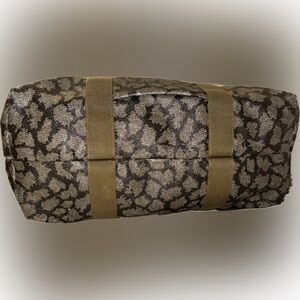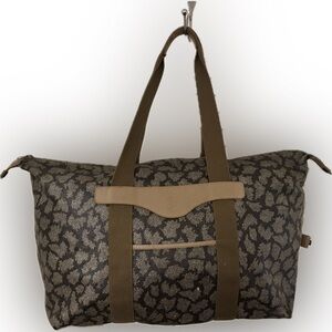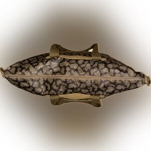 Chic tote with animal print design. Features sturdy tan straps. Perfect for everyday use.