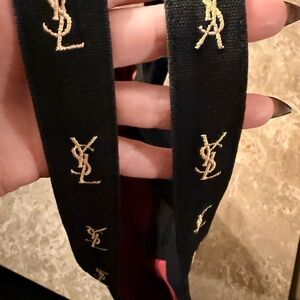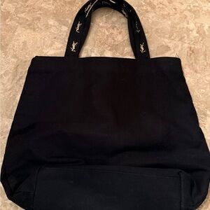 Chic Yves Saint Laurent tote in black with gold accents. Stylish and functional.