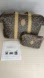 • The canvas pattern is vibrant, and the leather trim is only slightly worn (see photos).