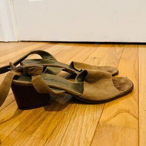 Yves Saint Laurent Gold Brown Suede Sandals Ladies YSL 7.5 Ballet Heel