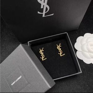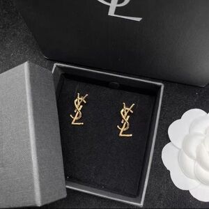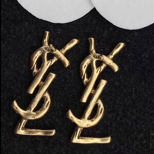 Elegant gold-tone earrings featuring the iconic YSL logo. Perfect for adding a touch of luxury.