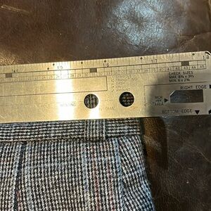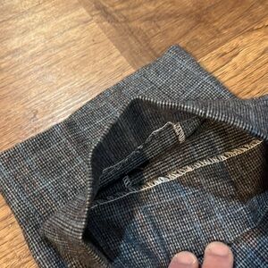 Perfect for any occasion. Genuine Yves St Laurent herringbone textured gray and blue trouser pants with a hue of blue and red in the plaid print. These 100% wool but lined with 100% cotton for breathability purposes designer pants have no labeling on them except the sticker on the inside of pocket that I found which tells me a lot. They were made in 1970 and part of a two piece suit for woman originally. I don’t think my mother has ever worn these but the one time she modeled them for the company magazine shoot in 1969. The sticker is still in place underneath the pocket. These were also made in France with 100% French lambs wool and are extremely soft yet durable in nature. Offers are always welcomed and appreciated !!!