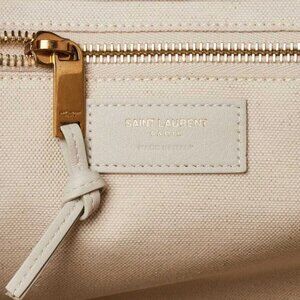 Yves Saint Laurent Green Linen And Leather Rive Gauche Tote Bag