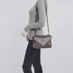 Yves Saint Laurent Grey Croc Embossed Leather Monogram Medium College Bag
