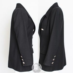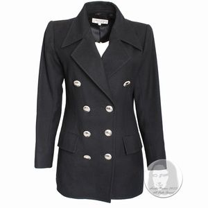 Yves Saint Laurent Jacket Black Wool Double Breasted Pea Coat Jacket Vintage 90s